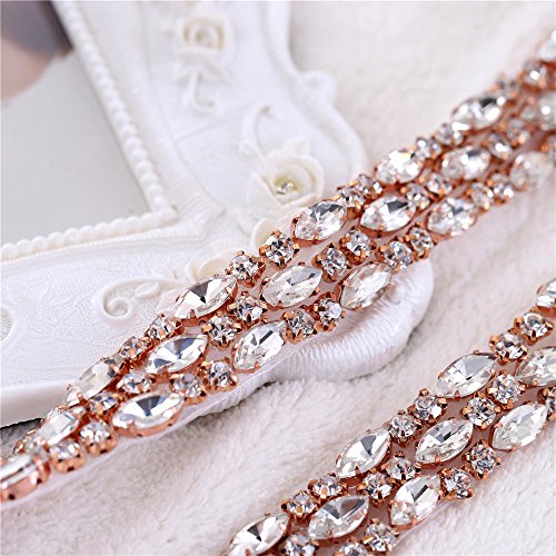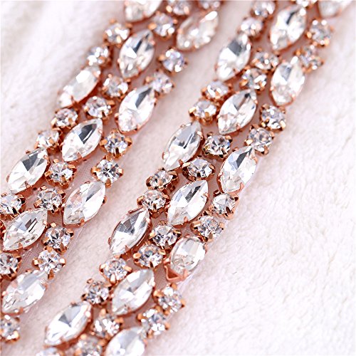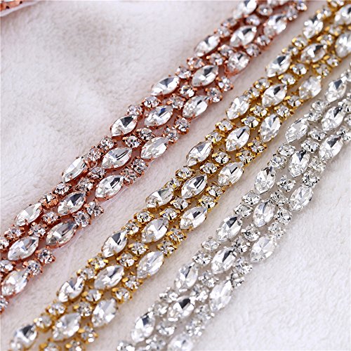 1 Yard Thin Stunning Rhinestone Belt Sparkly Rhinestone Trims Crystal Chain Embellishment Hot Fix for Wedding Dress Evening Gown Bridal Sash Belt Bracelet Shoes DIY - Rose Gold
