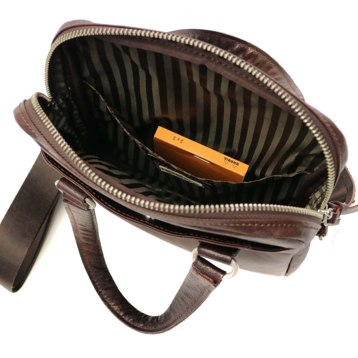 Main storage where items necessary for going out, such as long wallets and notebooks, fits neatly. The interior is equipped with pockets, making it easier to manage subdivisions. Frequently used items can be stored in the outside pocket. Leather of the storage mouth ship pull and lining of the stripe pattern etc., the point of attention of details is a nice point.
