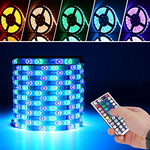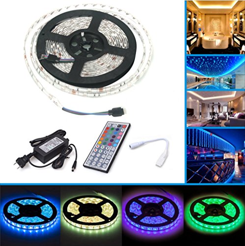 LED Strip Lights,Waterproof Color Changing RGB SMD5050 150 LEDs, LED Strip Kit & Mini 44-key IR Controller + 12V 5A Power Supply, Adhesive Light Strips