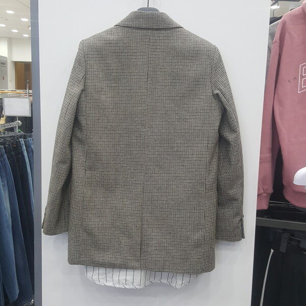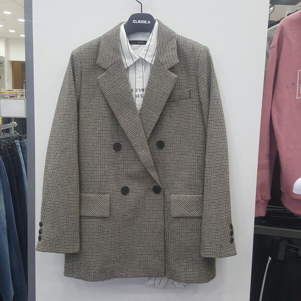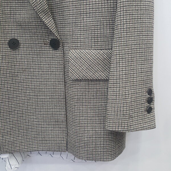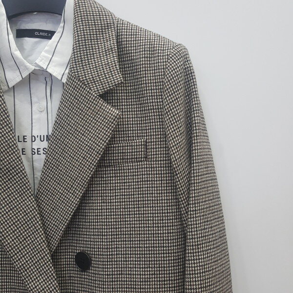 여성 하운드 투스 모직 자켓입니다 더블 자켓 타입으로 티셔츠와 청바지 또는 민무늬 셔츠와 같이 연출하시면됩니다
