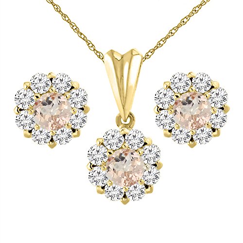 -. Title : 14K Yellow Gold Natural Morganite Earrings and Pendant Set with Diamond Halo Round 6 mm