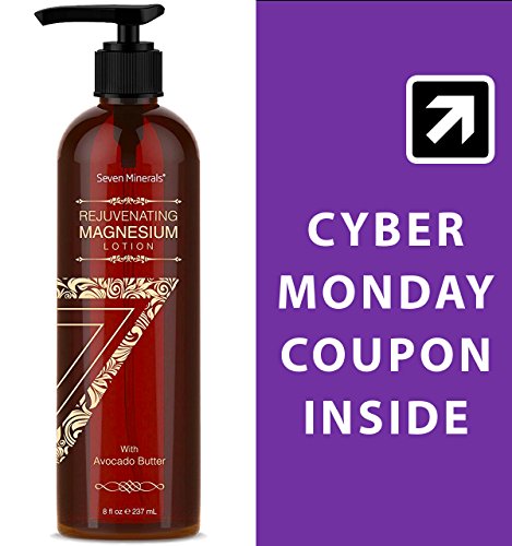 -. Feature : ►►► CYBER MONDAY 25% OFF Entire Seven Minerals Catalog. Enter code CYB25OFF at checkout ►THE BEST NATURAL BODY LOTION YOU'VE SEEN: Never before on Amazon have you found a daily moisturizer quite like this. Cutting edge micro technology delivers serious results by combining pure ionic magnesium with soft avocado butter, organic essential oils and the world's top natural skincare ingredients and skinceuticals. Instantly feel hydrated and enjoy the silkiest skin ever. / WITH THE MIRACLE ANTI-AGING MINERAL: Our secret, lies in Pure Magnesium Chloride, mined from 250 million year old Permien Seabed. When applied to the skin, Magnesium is delivered deep below the basal layer, where skin regeneration takes place. It helps improve elasticity, circulation and collagen. But, it also acts as a carrier, taking other skin vitamins and nutrients with it, like delicious Organic Essential Oils. / SAFE, NON TOXIC HEALTHY BODY LOTION: What goes on our skin, goes deep into the cells of our body. Rejuvenating Magnesium Lotion contains NO endocrine/hormone disruptors, NO known cancer-causing ingredients, NO synthetic colors and NO nasty fragrances. Ingredients are natural and tested for impurities. / SILKY SKIN AND A YOUTHFUL GLOW: Your Magnesium Lotion is formulated with the world's latest technology in skincare. Magnesium combined with: creamy Avocado Butter, anti-aging Royal Jelly, silken organic Shea Butter, organic Cocoa Butter, calming Lavender oil, invigorating Lemon oil, beta glucans and other natural, non-toxic skin food ingredients. It's a complete Skin Spa! You won't be able to keep your hands off yourself! / 100% MONEY BACK GUARANTEE: We stand firmly behind the Spa quality of this daily moisturizing lotion. You'll fall deeply in love with your skin's smooth, silky feel and realize, you have made the best skincare choice on your search today. Order Now. Satisfaction guaranteed, or your money back.