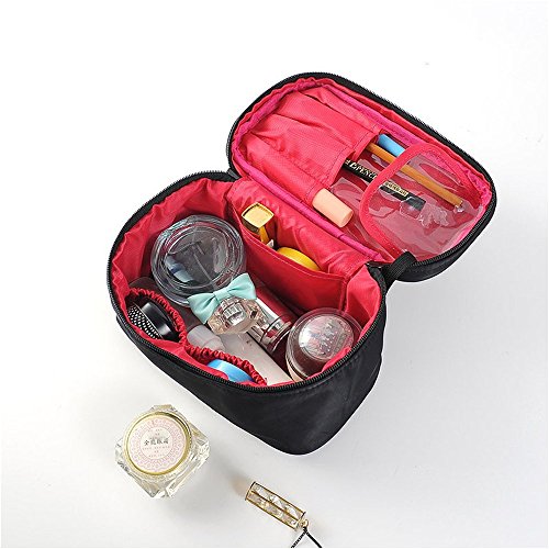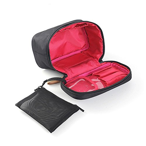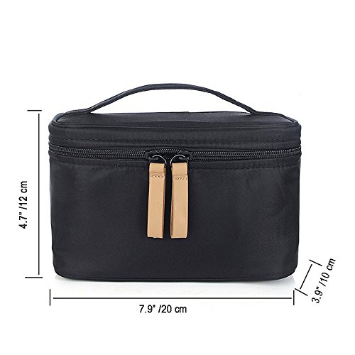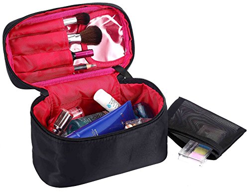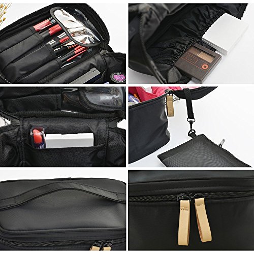HOYOFO Cosmetic Bags Small Travel Makeup Case with Brush Holders Toiletry Storage Bag with Removable Mesh Pouch, Black