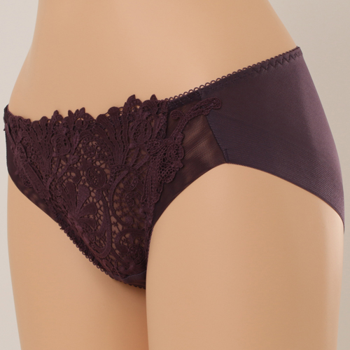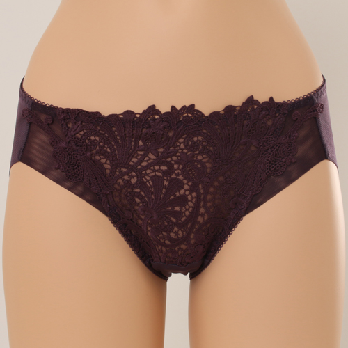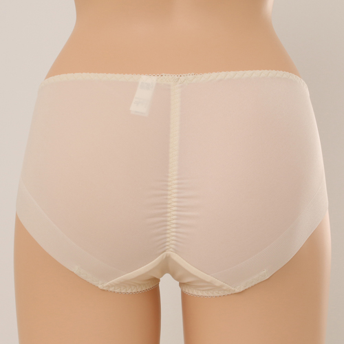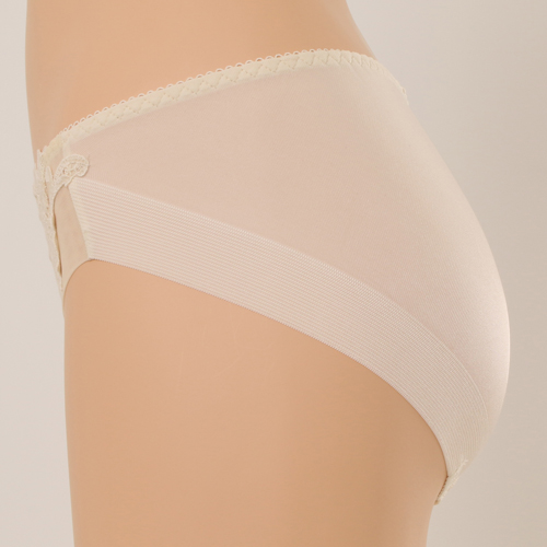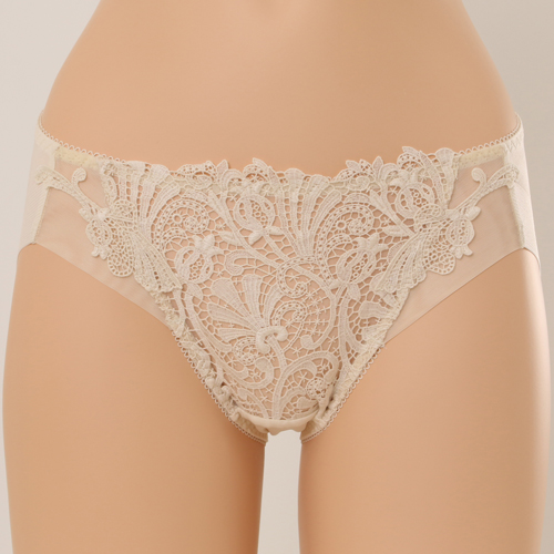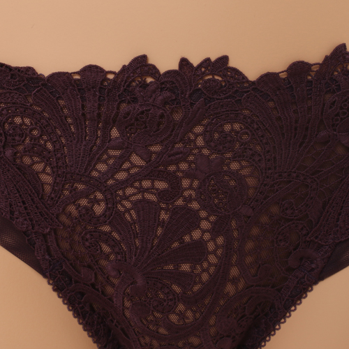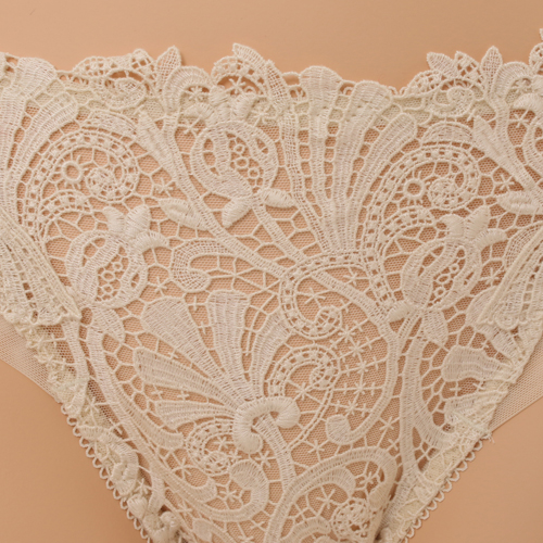 부드러운 코튼 터치의 케미컬레이스와 모티프 매칭으로 레이스의 고풍스러운 이미지를 느낄수있으며 뒤판을 햄 원단 사용하여 노라인 효과를 준 삼각 스타일 제품이다.