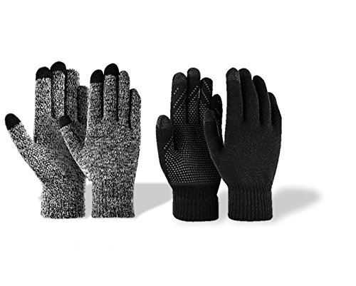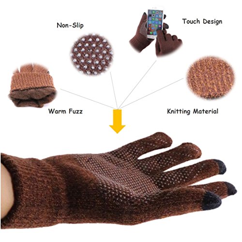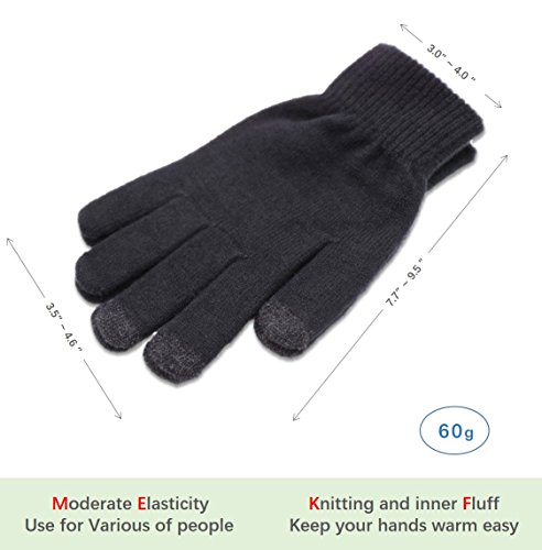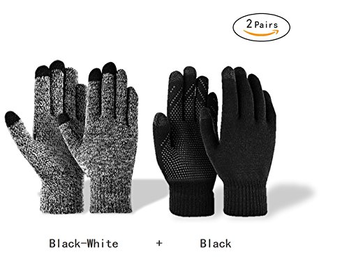Binding : Apparel Product Description Specification ?Material: Knitted fiber and brushed ?Size: 8.3*3.6*3 ?Weight: 1.7ounces per pair of glove ?Color: Black and White, Black, Gray,Coffee, Brown and Dark blue The Hot and Warm Gloves Knitted and brushed fabric can keep your hands warm and flexible in the cold winter, and the gloves are perfectly fit with the hand curve so that is very comfortable and soft to wear. A wonderful item for wearing in cold winter while skiing, skating, sledding,climbing,camping, hiking or any outdoor sports and activities. It's an excellent choice for Gifts or Your Own Dressing. Buy more for your friends and family. The 3 Touch screen Fingers Capability Design The touch screen technology to keep your hands warm while also very Convenient and Great for Texting/Typing/Writing on the touch screen in cold winter. Non-slip Particles on the Palm Face High-grade silicone non-slip particles on the palm,which helps you control the article on hand better. Good Stretches Fit Most Hands Good flexibility can fit most hands.If you have any questions about the size, please don't hesitate to contact us by e-mail! Product Care Instructions Do not wash by hot water; Do not chlorine bleaching; Hang dry in shade; Do not iron; Hand Wash or Spot clean recommended! Please Not Try to Machine Wash or Brush Wash (In order to avoid Pilling). 0