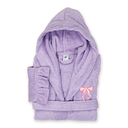 Overview: Perfect for after a bath or to wrap up in and stay snuggly warm. The Linum Kids robe is made with durable super soft Turkish combed cotton looped terry and features a roomy hood, full length sleeves, front pockets and a belt that is stitched on the back so it stays attached. Details: - Plush robe absorbs water readily and helps to conserve body heat