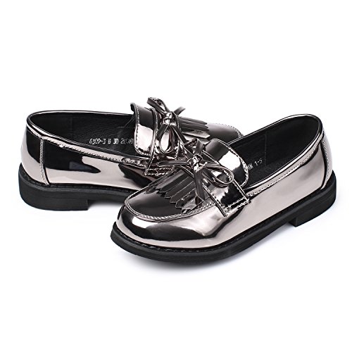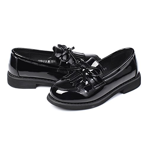 -. Binding : Apparel -. Brand : Alicorn -. Department : girls -. Feature : Sweet & Lovely: The delicate bowknot and tassels are fashion and sweet. / Comfortable & Soft: The shoes are soft and comfortable to wear. / Skid Resistant: high quality outsole is light and wearproof, which can prevent the kids from falling . / Slip on : Kids can take off or put on the shoes easily. / Please choose the size on the basis of the length of shoes in our size chart. If you have any problem for choosing size, please don't hesitate to contact us. -. Model : 6309-3 -. ProductGroup : Shoes -. ProductTypeName : SHOES -. Title : Alicorn Girl's Silp On Loafer Shoes Patent Leather Flat Shoes