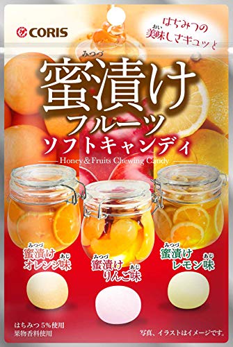 原材料:砂糖、水あめ、加工油脂、はちみつ、ゼラチン、でん粉/乳化剤、酸味料、香料、着色料(アントシアニン・フラボノイド・カロチノイド)、リン酸カルシウム