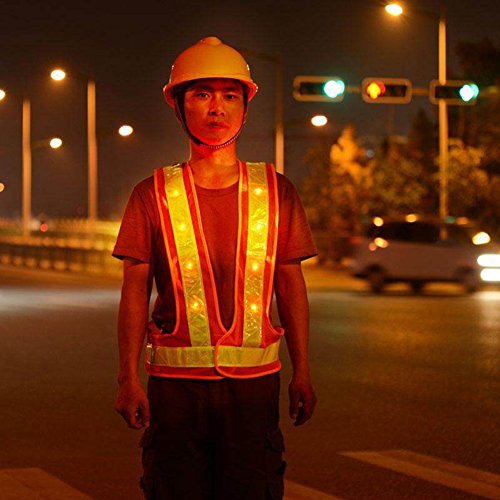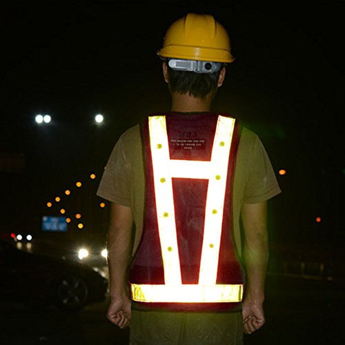 Fuloon 16 LED Light Up Safety Reflective Stripes Vest Traffic Outdoor Night Safety Warning Clothing