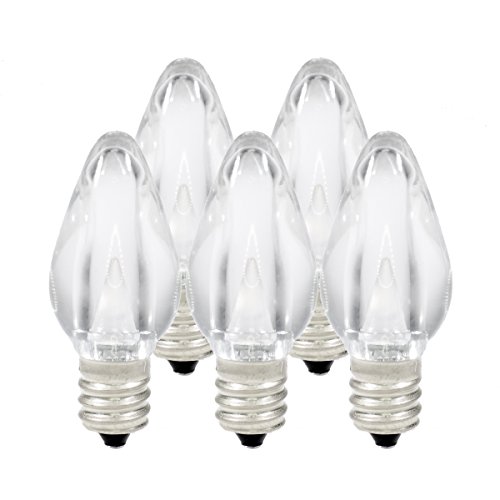 Holiday Lighting Outlet LED Smooth C7 Cool White Replacement Christmas Light Bulbs for E12 Sockets, Energy Efficient Commercial Grade, 2 Diode 0.58 Watt (LED) Bulbs. Pack of 25 Bulbs