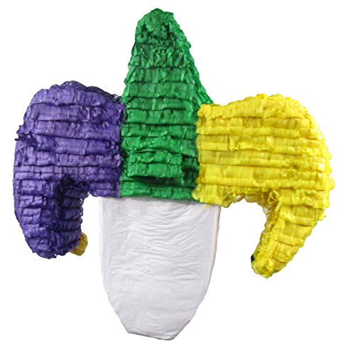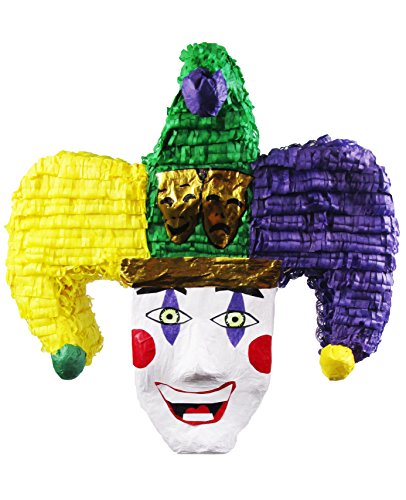 Studio : Pinatas Publisher : Pinatas Binding : Toy Product Description Features a Mardi Grass Joker decorated with fringed cut tissue paper. Pinatas measures 16" high by 17" long by 4" deep and holds 2 lbs. Of toys and candy (sold separately). Perfect for emoji themed birthday parties, office events or simply for texting addicts makes a unique decoration, exclusive photo prop and fun party game. Comes with strong cable tie to hang Pinatas. Attach a rope to Pinatas cable tie and hang from a tree branch. Pull the other side of the rope so the Pinatas swings up and down. Guests must take turns to beat it with a stick. Add a blindfold and spin player around for extra fun . 0