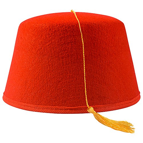 -. Binding : Apparel -. Brand : Funny Party Hats -. ClothingSize : One Size -. Color : Red -. Department : mens -. EAN : 0632181241325 -. Feature : This Classic Gold Tasseled Red Fez is a Versatile Party Hat / This Felt Fez Hat is a Perfect Costume Accessory for Aladdin or a Moroccan Man / Dress Up Your Monkey with Cymbals, Become a Middle Eastern Adventurer, or Don Circus Threads with this Red Hat! / Top Off Your Look at Halloween or Costume Events with This Red Fez / One Size Fits Most Up to 8" Diameter. Crown Measures 4" High -. IsAdultProduct : 0 -. Model : am357 -. MPN : am357 -. PackageQuantity : 1 -. PartNumber : am357 -. ProductGroup : Apparel -. ProductTypeName : ACCESSORY -. Size : One Size -. Title : Red Fez Hat - Turkish Hats in Felt with Gold Tassel by Funny Party Hats® -. UPC : 632181241325