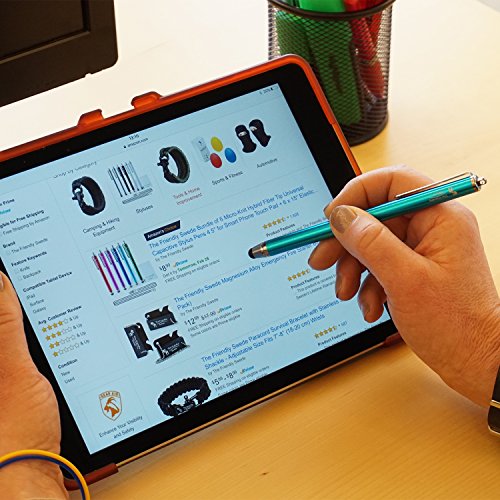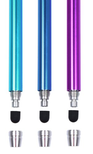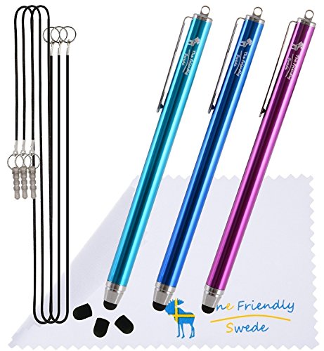 The Friendly Swede 3 pack 5”5 Thin-Tip Fine Point Stylus Pens + 3 replaceable tips + Cleaning Cloth + Lanyards