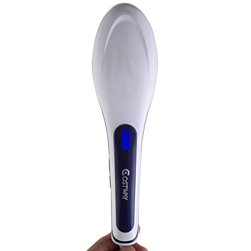 Giantex Electric Hair Straightener Comb LCD Auto Temperature Control Iron Brush Massager (White)