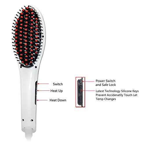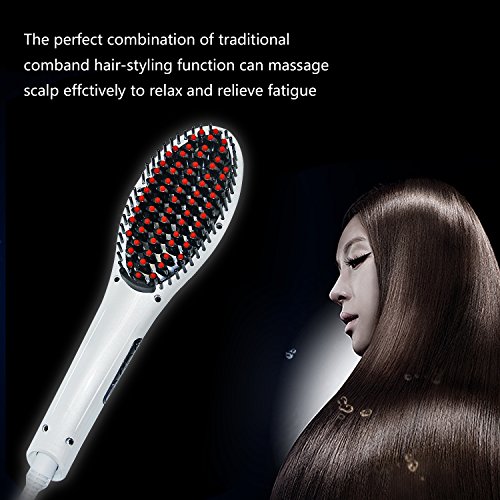 Hair Straightener Brush,Anti Static Electric Heating Magic Silky Hair Straightening Brush with US Plug addpoweradd EXCLUSIVE (white)