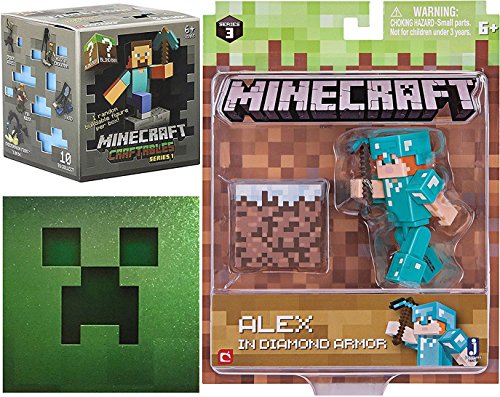 -. Title : Minecraft Diamond Alex Armored Figure Series 3 Bundle - Mystery Buildable Figure Blind Box Craftables & Bonus Creeper Foil Sticker