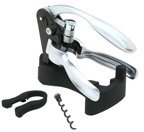 -. Feature : Professional-quality wine opener / Removes corks quickly and easily / Nickel-plated zinc alloy / Easy-grip handles / Includes extra corkscrew, stand and foil cutter