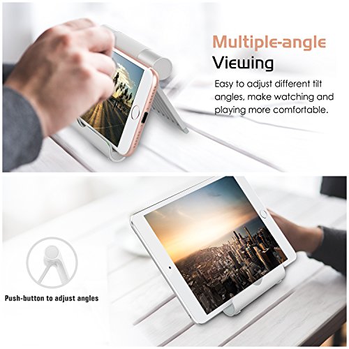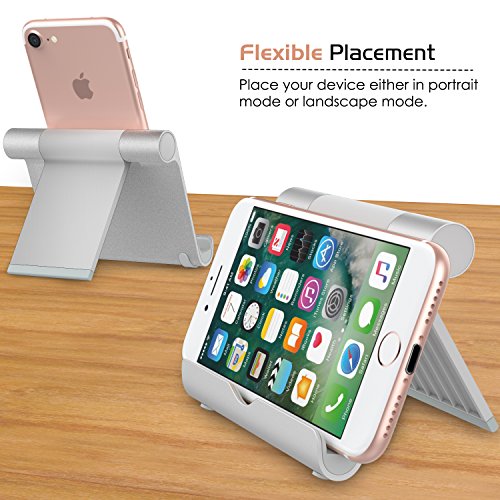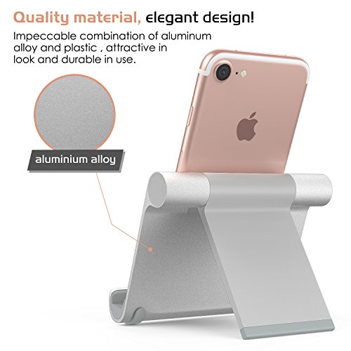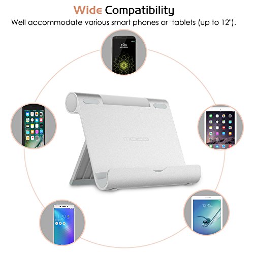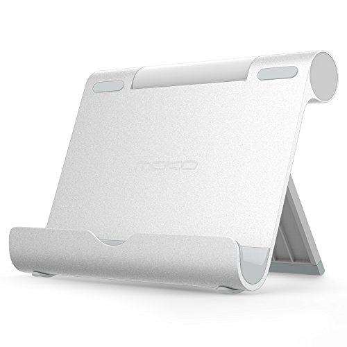 MoKo Tablet Stand, Aluminum Multi-angle Portable Fold-up Holder for Smartphones, Tablets(4-12 Inch), E-readers, iPhone 7 Plus, 6s Plus, Samsung Galaxy S8/S8 Plus, iPad Air 2/iPad Pro 10.5/9.7, SILVER