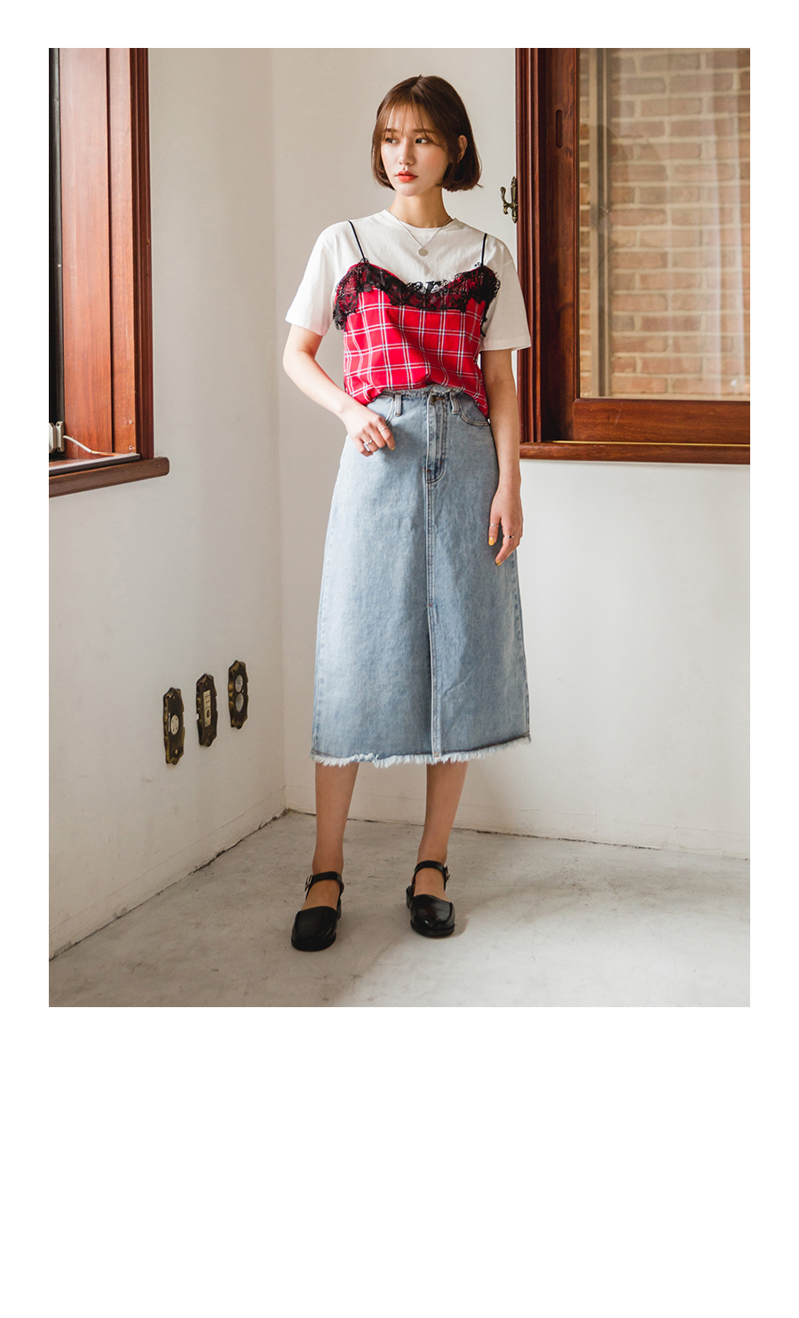 살짝 드롭된 숄더라인으로 체형이 작아보이고