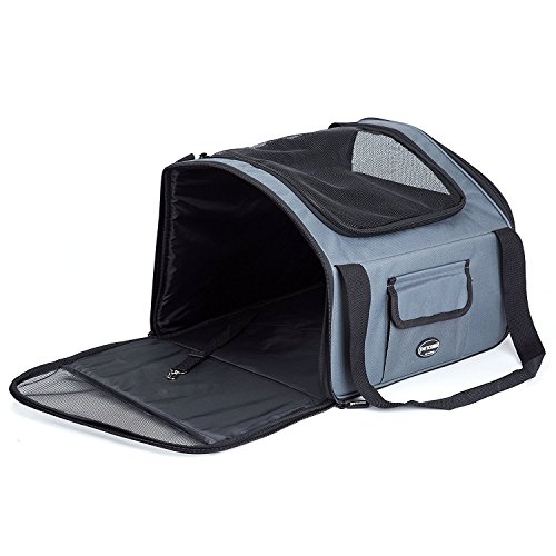 -. Feature : Durable, easy-to-clean fabric,With stylish designs. / Comfortably holds your pets when traveling and the mesh panels keep your pet cool and comfortable. / Folds flat for convenient storage. / Product Dimensions: 15 L x 12.5 W x 9.5 H in,Suitable for small dogs, cats, puppies and many other house pets weighing up to 15 lbs.