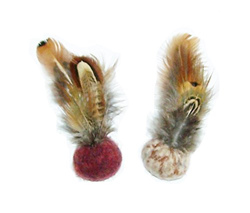 -. Feature : A TOY CATS LOVE These fun little assorted cat toys are sure to keep any playful feline busy for hours on end. Specially crafted to inspire any kitten or full grown cat toy chase, hunt, stalk, throw, and carry- these unique little toys are the perfect special gift for any special kitty. / ORGANIC CATNIP Each 'felt ball' is filled with 100% organic catnip raised in the USA. / UPCYCLED These toys are made from upcycled felt material- so you can rest assured that they truly are a great eco-friendly product for your cat. Each toy is also 100% biodegradable so once your cat has used it to pieces (pun intended) you can discard of it without guilt. / NATURALLY DELIGHTFUL The natural (undyed) feathers in this toy inspire many cats to get up and play, mimicking one of their natural prey- birds. / HANDMADE IN THE USA Each one of these toys is specially crafted in Minnesota, USA and will vary slightly in size and shape because of this. Each toy comes in assorted colors due to the 'upcycled felt', but we guarantee no matter what hue these toys are- your cats will love them. They are the high quality you'd expect from specially handcrafted products.