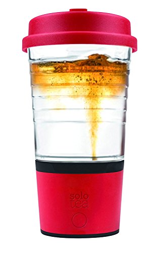SoloTea French Design Smart Tea Brewer System with Premium 12 OZ Travel Mug 100% BPA Free (Red)