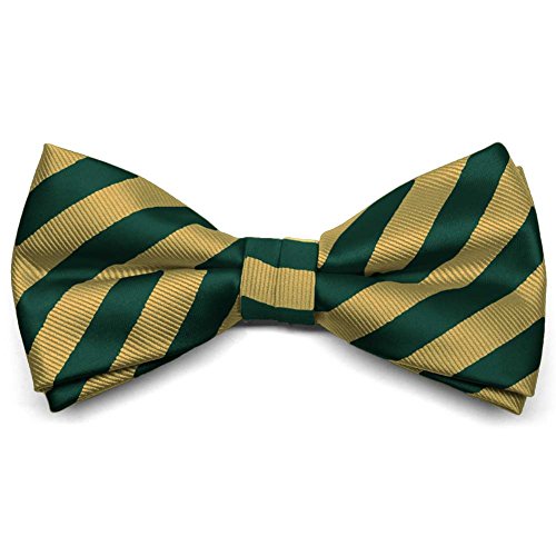 -. Title : TieMart Hunter Green and Gold Formal Striped Bow Tie