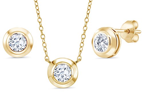-. Title : Created Moissanite 18K Yellow Gold Plated Silver Pendant Earrings Set With Chain