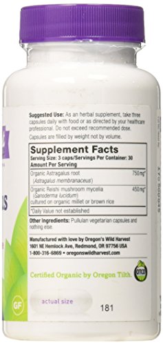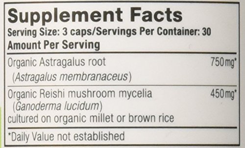 The organic Reishi is carefully grown on organic millet to nurture its level of polysaccharides, and the organic Astragalus root is classified as "premium grade" due to the age and the size of the root.