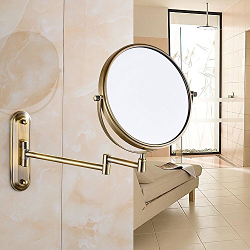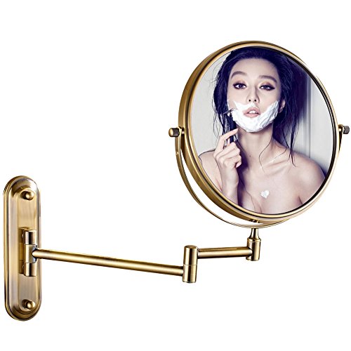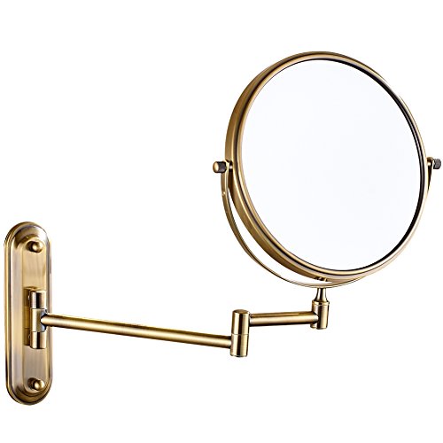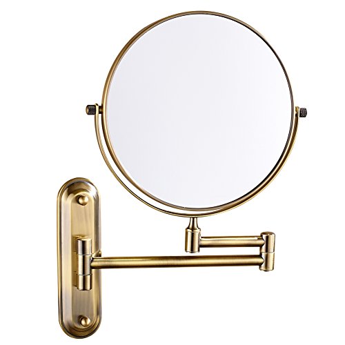 GuRun Two-Sided Swivel Wall Mounted Makeup Mirror With 10X Magnification,Antique brass 1206K(8inch,10x)