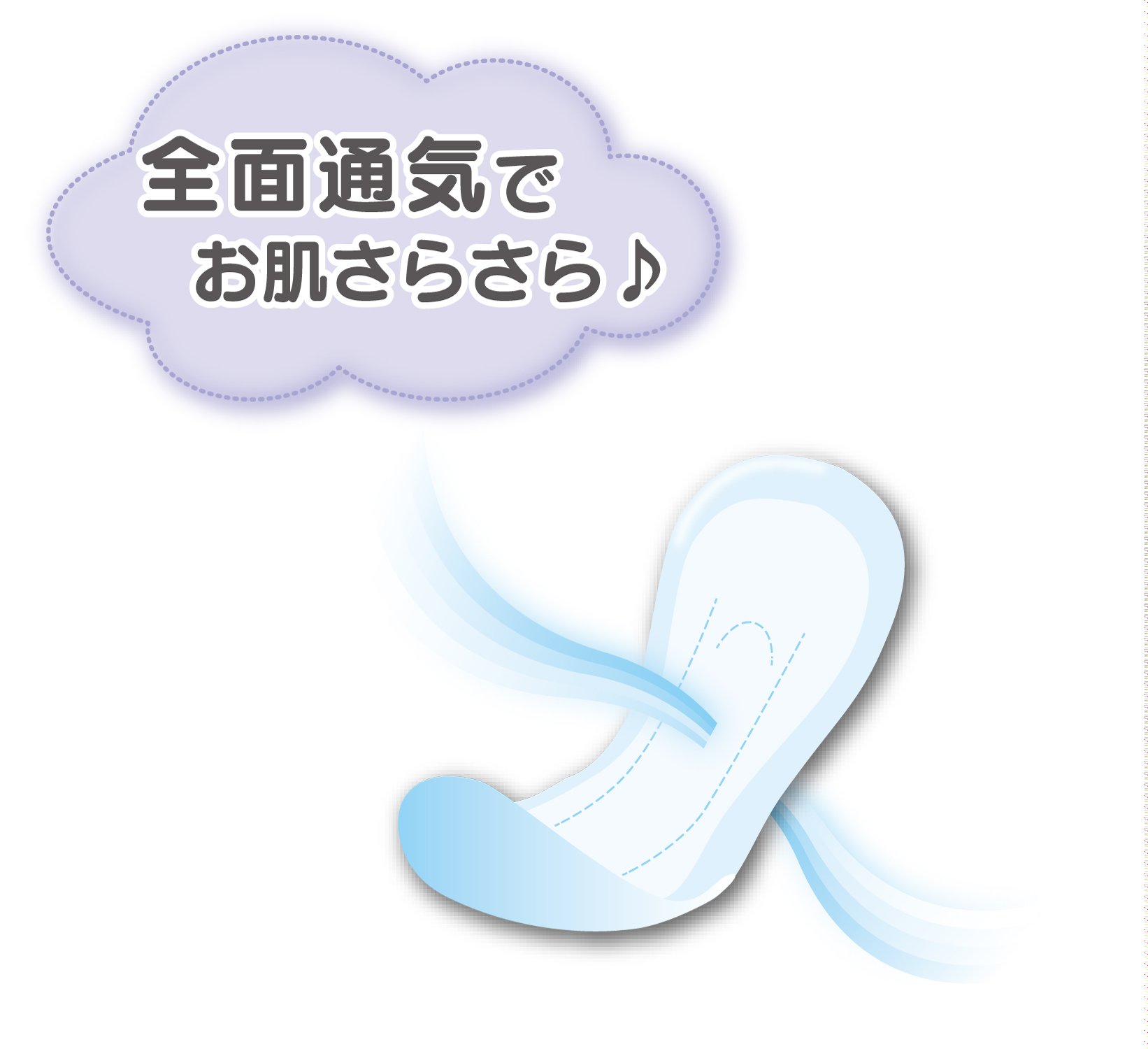 The backsheet adopts a breathable sheet over the entire surface, and escapes moisture and moisture that tend to be overheated to the outside of the pad.