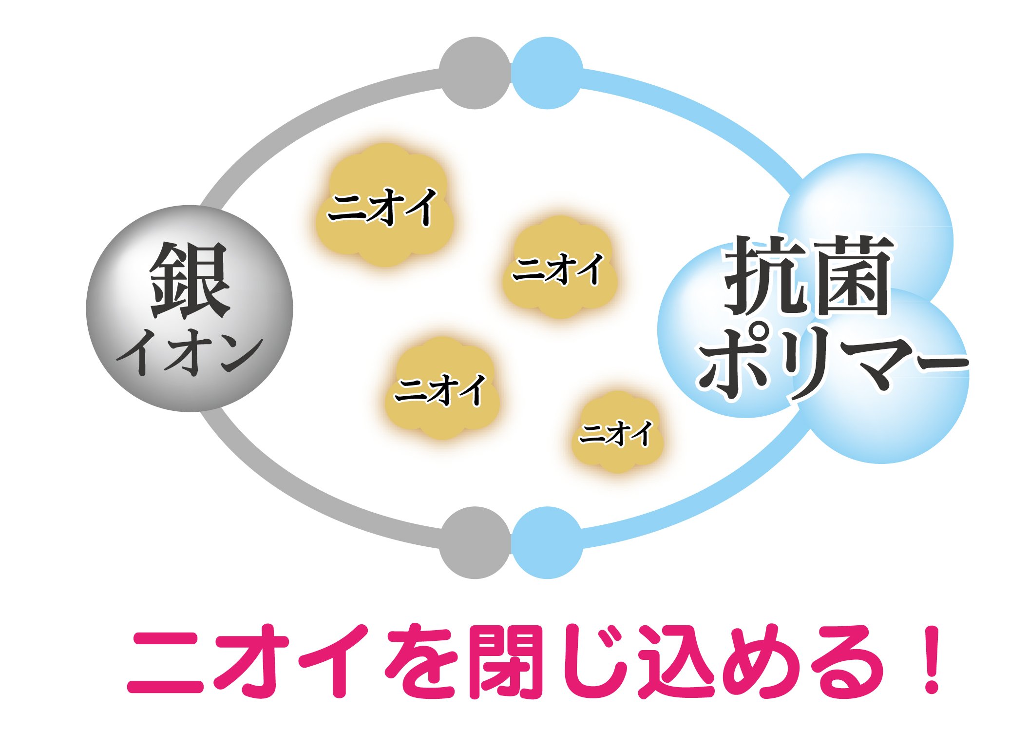 ● Deodorizing power of double: It firmly confines odor with two powers of silver ion deodorizing sheet and antibacterial polymer.