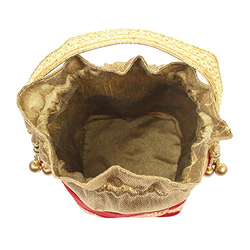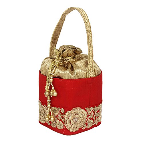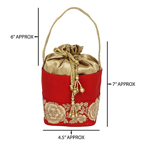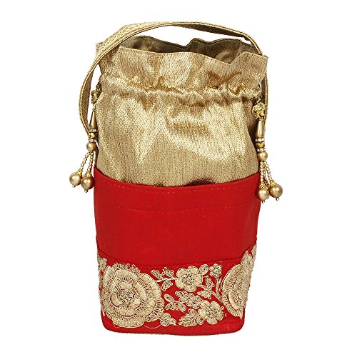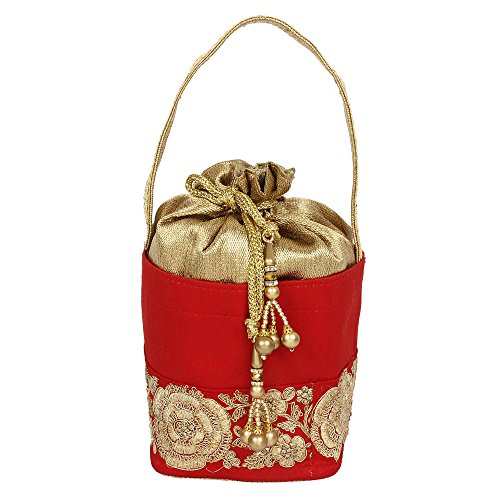 (Purse Collection)/Accessories/Handbags/DIRECT FROM USA/Purse Collection Stylish Drawstring Red Colour Potlli With Embroidery Work Purse For Women's