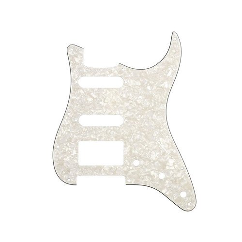 Product Description Pickguard 1 H.B. - 2 Single Coils for Stratocaster®, White Pearloid (11 screw holes). Gloss finish with foil conductive shielding on the back. 0