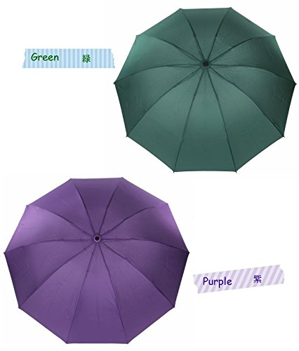 -. Title : 風に強い 傘 3つ折り 10本骨 フック付き 緑 ダークグリーン