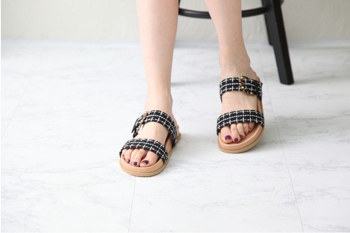 商品名:サンダル レディース ペタンコ フラットヒール 2018 春 ファッション 靴 婦人靴