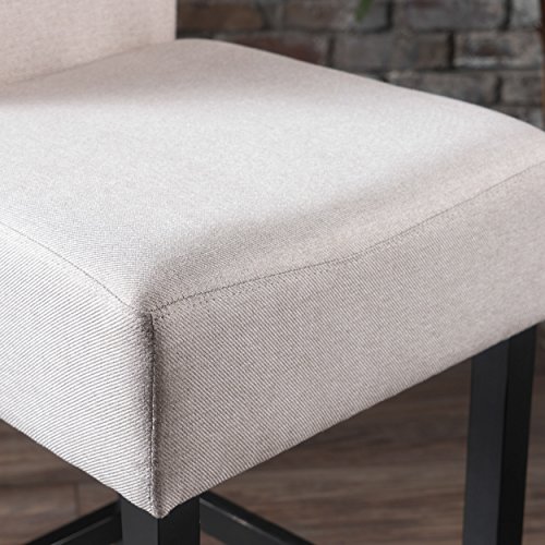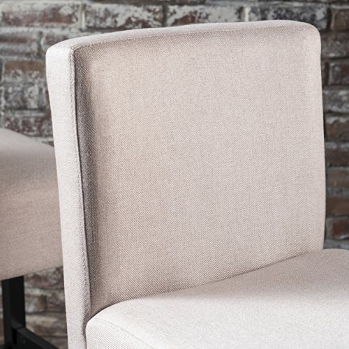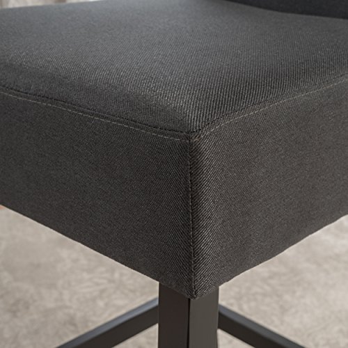 -. Brand : GDF Studio -. Feature : These comfortable barstools are a perfect transitional piece from your kitchen to your living room. / Includes: Two (2) Barstools / Dimensions: 23.62"D x 17.72"W x 41.73"H / Material: Fabric | Colors available in: Dark Charcoal or Wheat / Leg Material: Rubberwood | Leg Finish: Matte Black Some | Assembly Required -. Label : GDFStudio -. Manufacturer : GDFStudio -. ProductGroup : Furniture -. ProductTypeName : HOME_FURNITURE_AND_DECOR -. Publisher : GDFStudio -. Studio : GDFStudio -. Title : P.R.Im Backed Fabric Barstools (Set of 2)