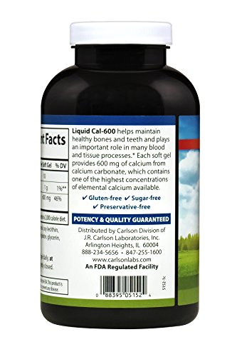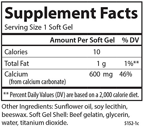 Calcium is important for strong, healthy bones and teeth. It also plays an important role in many blood and tissue processes. Cal-600 provides 600 mg of calcium from calcium carbonate per soft gel. Calcium carbonate contains one of the highest concentrations of elemental calcium at about 40%, almost twice the amount of other forms, making it an optimal choice.Feature