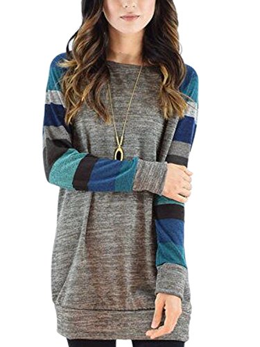 -. Title : (エックスパス)xpath ボーダー 長袖 ブラウス レディーズ クルーネック カットソー ロング トップス ゆったり シャツ カジュアル ブルー S