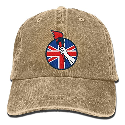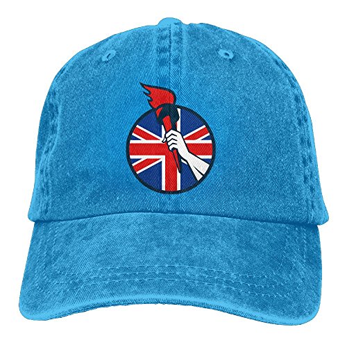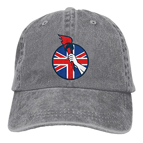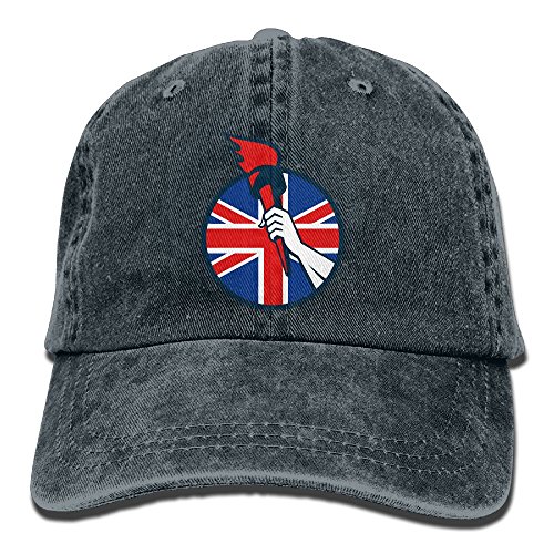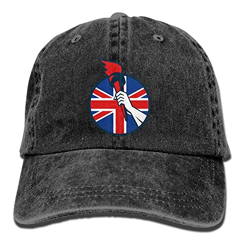(Guxin_KK)/Accessories/Hats/DIRECT FROM USA/Guxin_KK Hand Holding Flaming Torch British Flag Trucker Hat Washed Denim Adult Baseball Hat