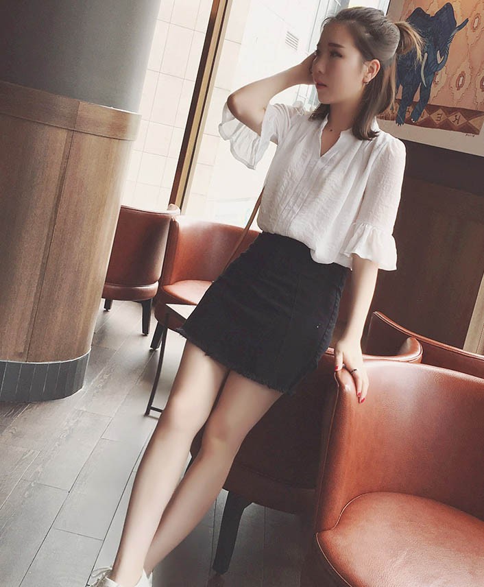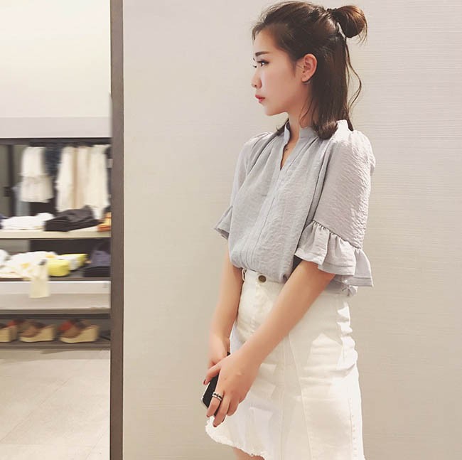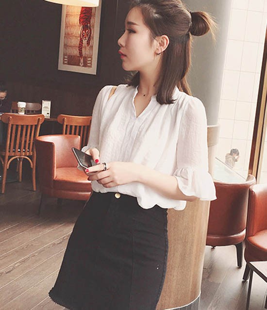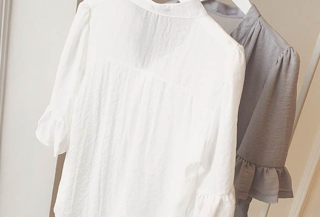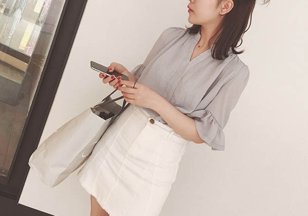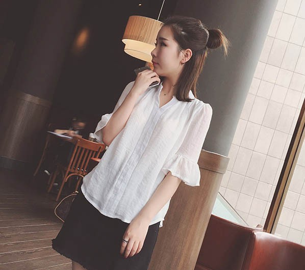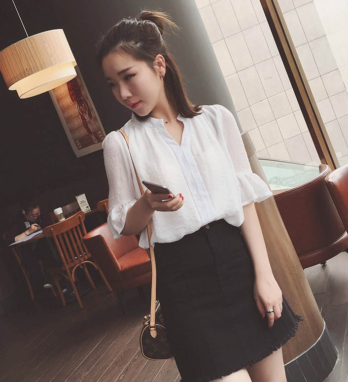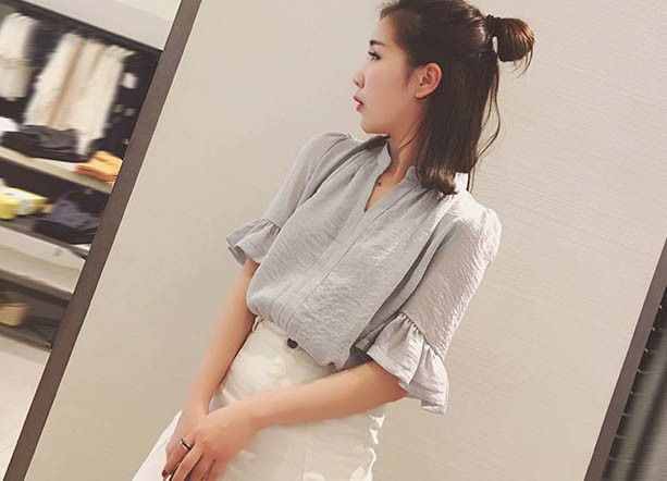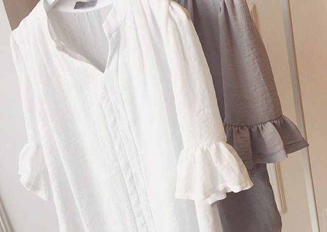 【入荷後営業日2,3日以内出荷予定 通関待ちや不良により出荷遅くなる場合はメールにてご連絡いたします。メール受信設定によっては正常に受信されない場合はございますので、 弊社からのメールを予め受信頂くようご設定くださいませ。】 トップス シャツ ブラウス シフォンブラウス Vネック フレア ラッパ袖 レディス レディース 春 新作 2018Vネックフレア袖シフォンブラウス◆サイズ:着丈55肩幅34袖丈30胸囲88◆素材:ポリエステル