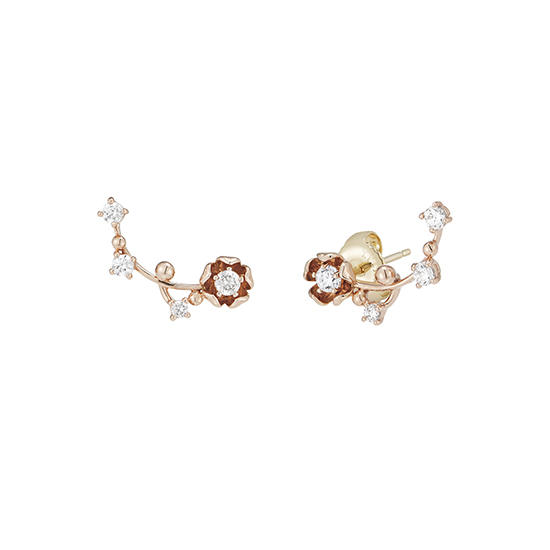 * 나뭇가지에 피어나는 매화 꽃 봉우리의 형상을 이레귤러하게 표현한 제품으로 리드미컬하게 셋팅된 스톤이