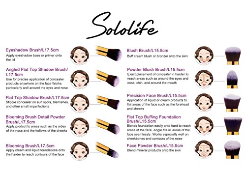 SOLOLIFE Makeup Brushes 10+1 Pieces Makeup Brush Set, 10 Pieces Professional Foundation Blending Blush Eye Face Liquid Powder Cream Cosmetics...