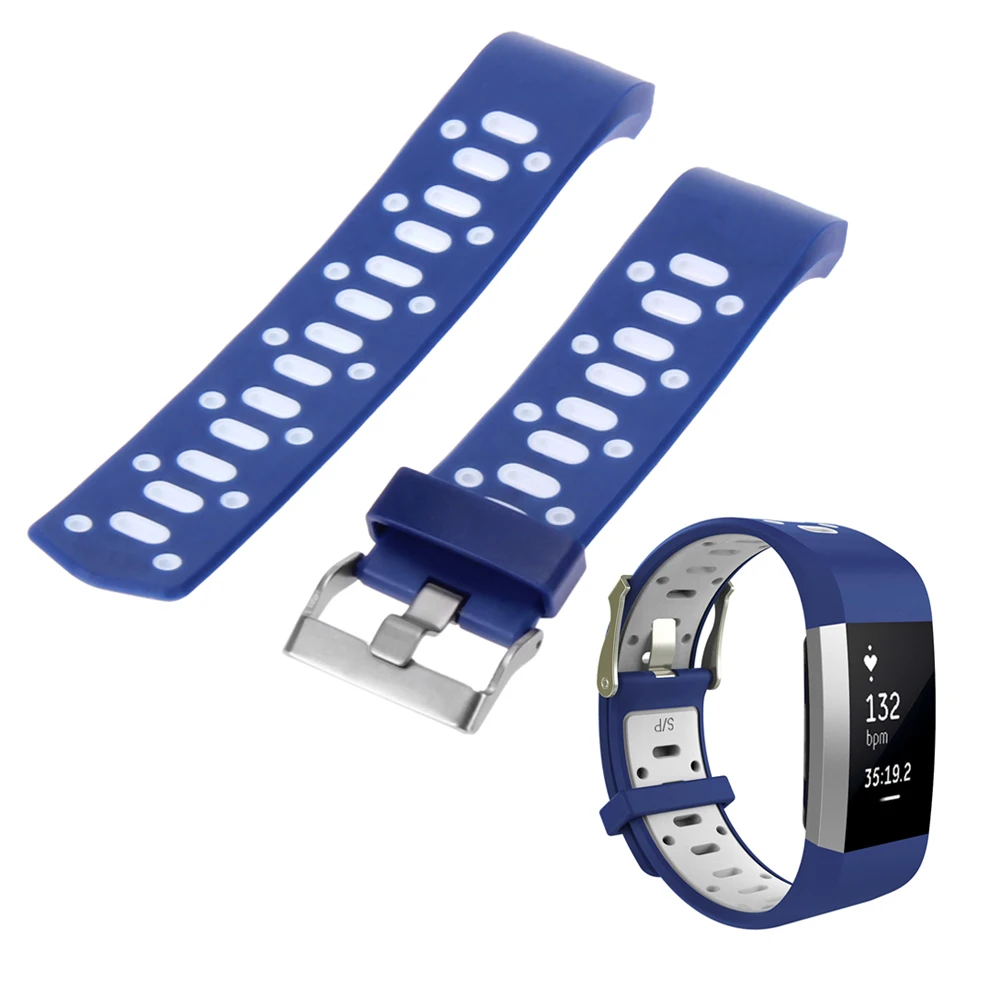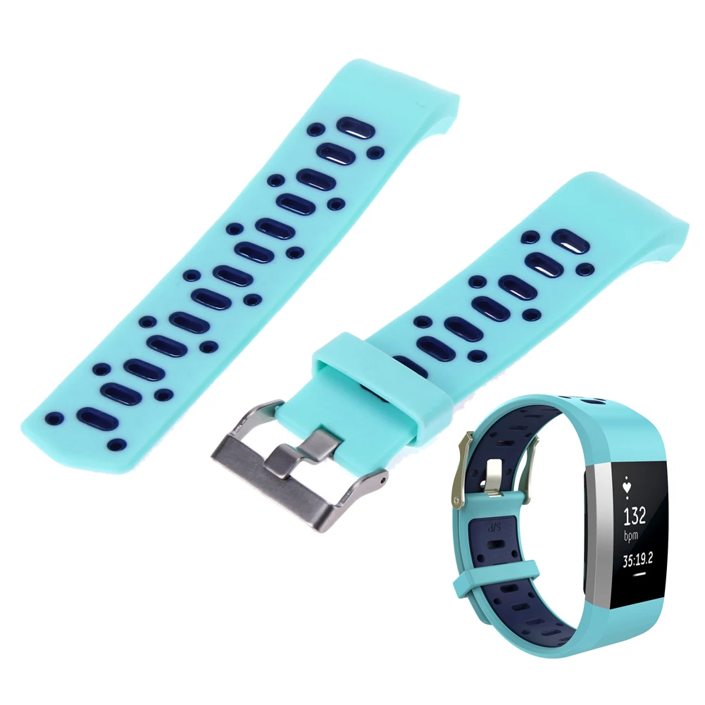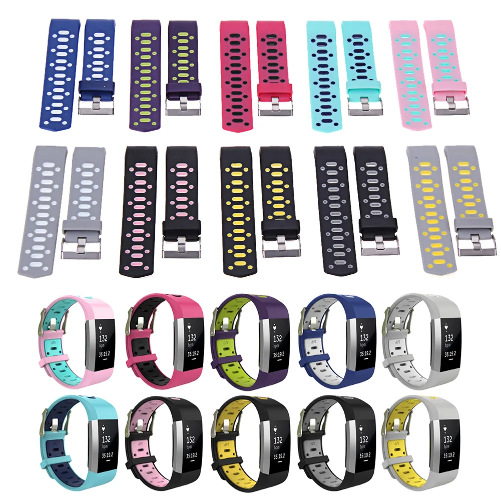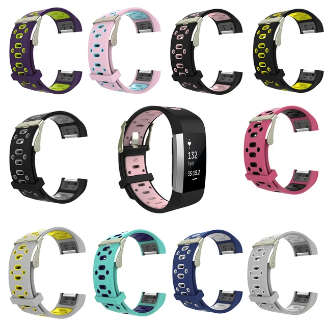 | [해외]더블 컬러 스포츠 스트랩 핏 비트 충전 2 밴드 조절 실리콘 시계 줄 핏 비트 충전 2 팔찌 스마트 Wr |
