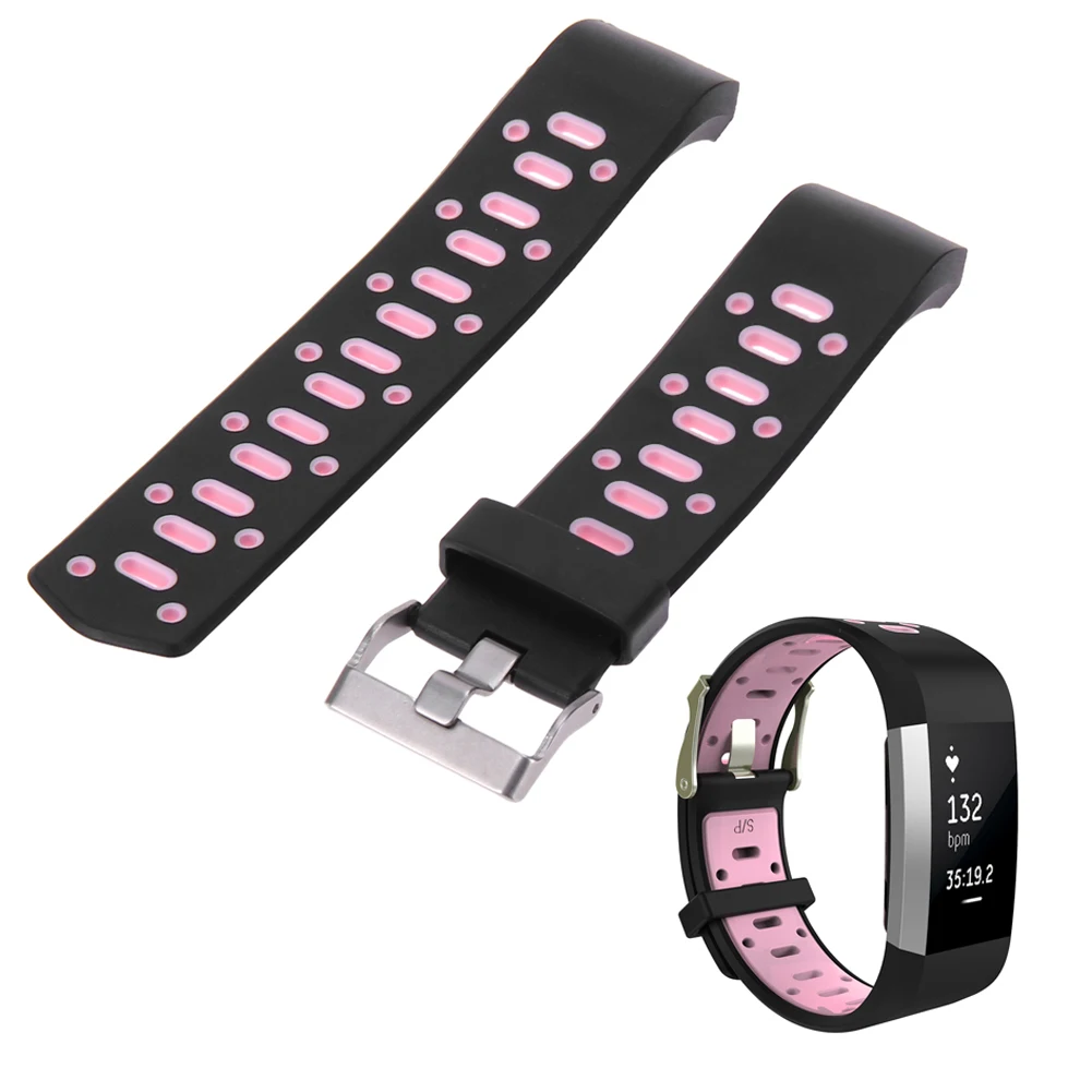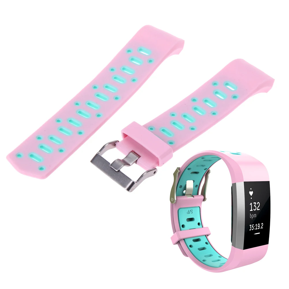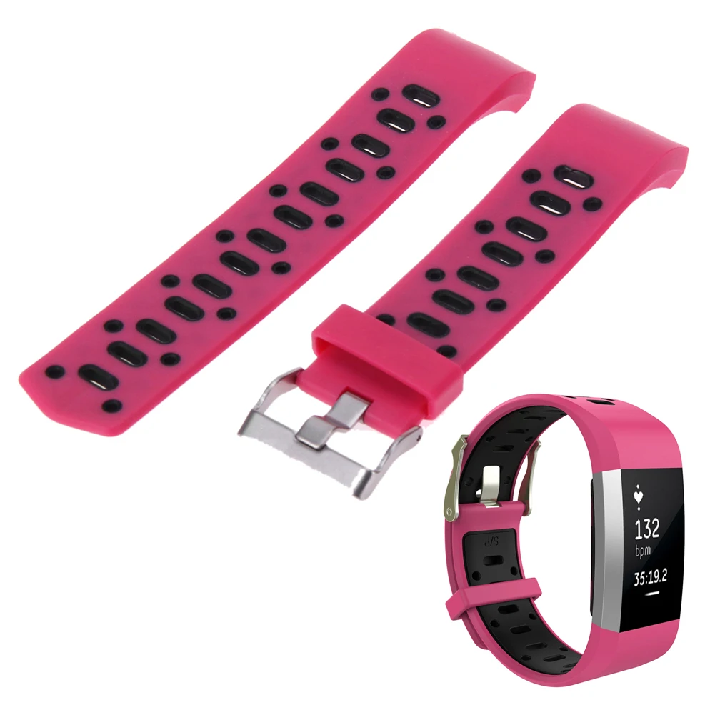 | [해외]더블 컬러 스포츠 스트랩 핏 비트 충전 2 밴드 조절 실리콘 시계 줄 핏 비트 충전 2 팔찌 스마트 Wr |