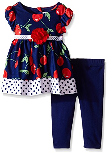 -. Title : Youngland Baby Girls' Cherry Printed Ponte Babydoll Dress and Legging