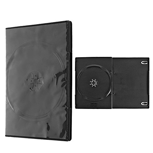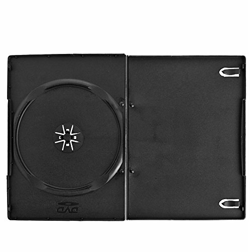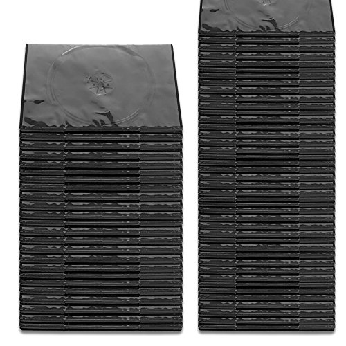 Flexzion CD Case 100 Pack Standard Single DVD Movie Music Blu-ray Disc Storage Boxes Collectible Holder Organizer 7mm Thick with Outter Clear Sleeve in Black