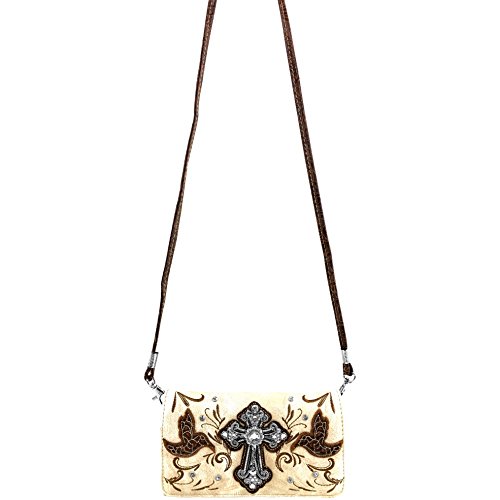 -. Title : Justin West Embroidery Hummingbird Autumn Floral Design Rhinestone Cross Wristlet Trifold Wallet Attachable Long Strap