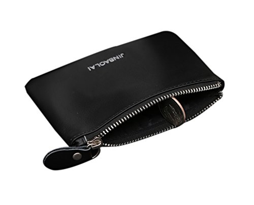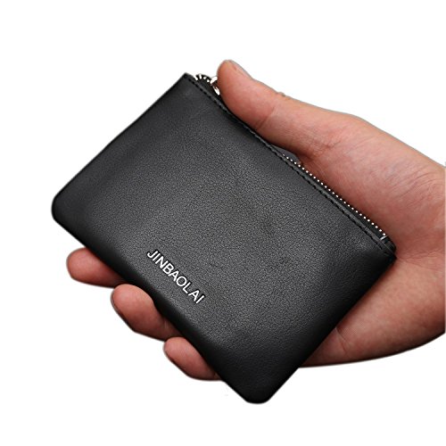 Aidee Genuine Leather Simple Credit Card & Coin Wallet with Zipper for Men and Women - Black