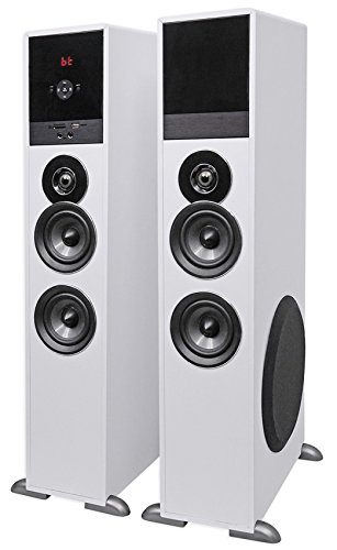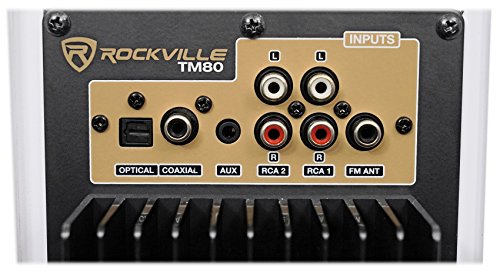 Rockville TM80W Complete Powered Home Theater Tower Speaker System With Dual 8" Subs. Built In Bluetooth with 150 foot range and perfect interference-free sound quality. Built in USB playback. Built in SD card playback. Built in FM radio with crystal clear reception. (2) 8" subwoofers with incredibly loud and deep bass response. (4) Full range drivers: 4" full range drivers with polypropylene cones, rubber surrounds, and bullet dust cap to give you incredible loud and clear sound.